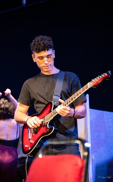With more than 20 years of stage and studio experience, Seif Ncib is a complete musician — mastering guitar, piano, drums, and voice. As the lead guitarist and second vocalist of Midnight Pin since 2014, he brings real performance expertise to our students.